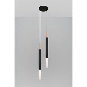 Tudo para iluminar seu ambiente com muito charme Perfeito para todos os ambientes Modelo: pendente Cor es : preto/cobre Material: alumínio com policarbonato Canopla de teto: alumínio 15cm Cabo de alimentação regulável: 1,5m Luminária: 2 soquete gu10 Número de lâmpadas: 2 lâmpadas não inclusas Voltagem: 127v/220v Medida: 53 x 3,5 cm Peso líquido: 1,30 kg Conteúdo da embalagem: 1 luminária de teto