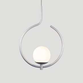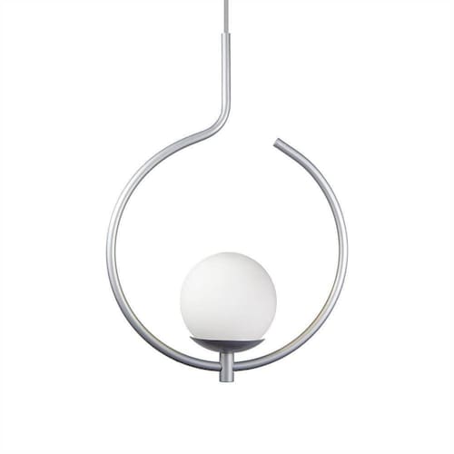 Pendente Lustre On Loop Prata Com Globo De Vidro Branco Lustre Pendente ON LOOP, design minimalista ao seu estilo. Descrição Técnica: - Modelo: On Loop - Acabamento: Pintura Térmica - Material: Aluminio e vidro - Tamanho (LxA): 25 cm x 36 cm - Cabo: 70 cm(regulável) - Soquete: Padrão G9 - Bivolt: Sim - Canopla: 12 cm