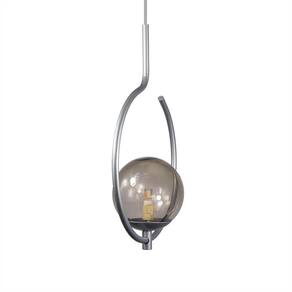 Pendente Lustre On Loop Prata Com Globo De Vidro Fumê Lustre Pendente ON LOOP, design minimalista ao seu estilo. Descrição Técnica: - Modelo: On Loop - Acabamento: Pintura Térmica - Material: Aluminio e vidro - Tamanho (LxA): 25 cm x 36 cm - Cabo: 70 cm(regulável) - Soquete: Padrão G9 - Bivolt: Sim - Canopla: 12 cm