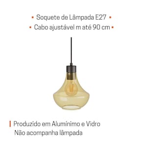 com design democrático, o pendente verbena é ideal para quem busca elegância e praticidade. Sua forma tradicional e versátil permite compor diferentes tipos de decoração, sendo perfeitos para uso em conjunto acima de bancadas e mesas de jantar. A cúpula de vidro do pendente clássico possui um formato orgânico, que transmite delicadeza e afetividade. Você pode regular a altura do cabo em até 90 centímetros. Os pendentes de vidro em diferentes tamanhos dão movimento ao ambiente e criando novas possibilidades de cenários. A pintura dos acabamentos em alumínio é na cor preta. A iluminação dessa peça, fica por conta de uma lâmpada de soquete e27. Como a lâmpada fica aparente, indicamos o uso de uma lâmpada de filamento, para deixar seu ambiente ainda mais bonito. Dados técnicos: material: corpo em alumínio e cúpula em vidro soquete: e27 peso líquido: 1,05kg ip: 20 marca: blumenau iluminação voltagem: bivolt garantia: 12 meses lâmpada não inclusa