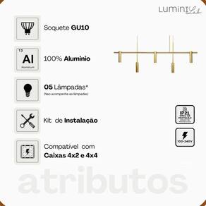 O Pendente Lux Aluminio Teto GU10 5 Luzes Lumini Lab é a escolha perfeita para quem busca aliar sofisticação e funcionalidade na iluminação de ambientes. Com um design moderno e elegante, este pendente é ideal para salas de estar, dining rooms e cozinhas, proporcionando uma iluminação agradável e distribuída de maneira eficiente.\nFeito em alumínio de alta qualidade, o pendente é durável e leve, facilitando sua instalação no teto. Compatível com lâmpadas GU10, permite a personalização da intensidade e temperatura da luz, adaptando-se ao estilo de cada espaço e criando a atmosfera desejada. Além disso, seu formato contemporâneo torna-se um elemento decorativo que valoriza qualquer ambiente.\nCom um acabamento primoroso, o Pendentes Lux é uma opção que combina estética e funcionalidade, tornando-se um destaque na decoração. Informe-se sobre a melhor forma de complementar seu espaço com este item de alta qualidade.\nEspecificações adicionais: - NCM: 9405.29.00 - Tipo de unidade: un - Código da Origem: 0 - Nacional, exceto as indicadas nos códigos 3, 4, 5 e 8 - Custo do produto: Consulte-nos para mais informações.\nTransforme seu ambiente com classe e estilo. Escolha o Pendente Lux Aluminio Teto GU10 5 Luzes Lumini Lab e ilumine sua vida com elegância. Marca: Não Informado