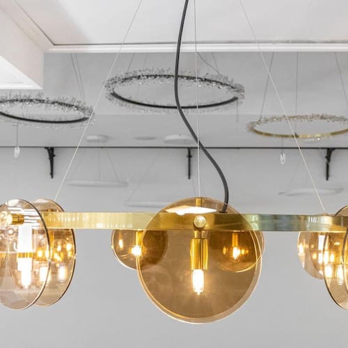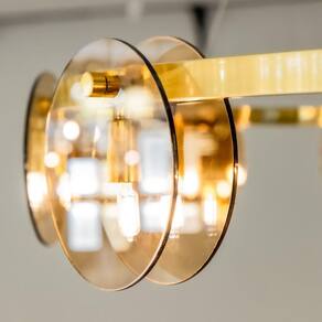 Os sanduíches de vidro marrom funcionam como anteparo para as lâmpadas G9 que podem ser em LED ou ainda halógenas, trazendo uma luz pontual e localizada.