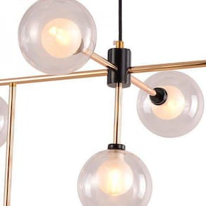 Pendente manhattan dourado - startec Pendente manhattan dourado - startec Cor: dourado e pretoSoquete: g9Lâmpada indicada: g9Ambiente de uso: internoMaterial: aço, vidroLed: não acompanhaComprimento: cabo com 45cmQuantidade de lâmpadas: 9Tensão: bivolt O pendente manhattan excelente peça decorativa, utilizada em diversos ambientes principalmente em salas de estar ou jantar.O cabo permite a regulagem de altura até 45cm AtençãoAs lâmpadas são vendidas separadamente.