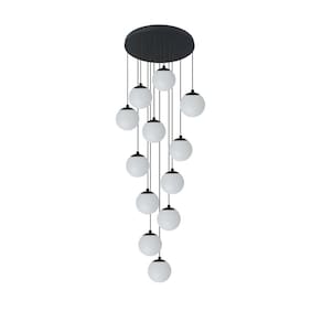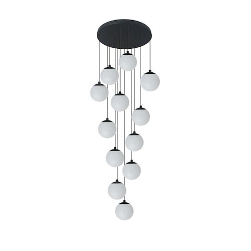 O produto inclui 1 pendente preto fosco e 12 globos de vidro.
