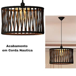 Imagine esta luminária suspensa sobre uma mesa de jantar, iluminando o ambiente com uma luz difusa e aquecida, enquanto sua textura de corda náutica complementa uma decoração com elementos em madeira e tons terrosos. Prepare-se para receber elogios pela escolha!