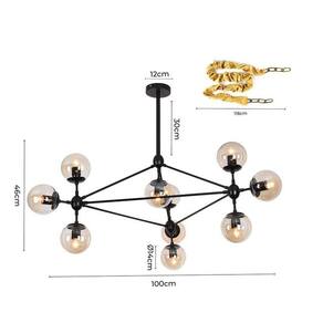 Pendente nordecor jabuticaba 14cm - preto ll3001b - bocal: 10E27 - ip20 - Lustre jabuticaba preto 10xe27 biv nordecor ll3001b família: pendente fabricante: nordecor referência: ll3001b origem: importado fonte de iluminação: lâmpada quantidade de lâmpadas: 10 lâmpada indicada: led filamento soquete: e27 Tensão: bivolt posição: sobrepor no a teto ambiente: interno dimensões cm : c 100 x l 93 x a 43 tamaho do cabo cm : 150 cor: Alumínio preto e vidro âmbar material: alumínio e vidro esse pendente é pendurado por uma haste preta de 30cm fixada na peça e por uma corrente com cobertura de tecido preta de 1,2m que conecta a haste à canopla de teto. Lâmpada não inclusa