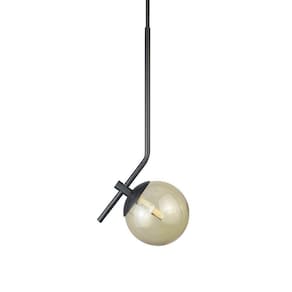 Pendente On Ly Preto Com Globo Esfera De Vidro âmbar Lustre Pendente ON LY, design minimalista ao seu estilo. Descrição Técnica: - Modelo: On Ly - Acabamento: Pintura Térmica - Material: Aluminio e vidro - Tamanho (LxA): 16 cm x 38 cm - Globo: 12cm - Cabo: 70 cm (regulável) - Soquete: Padrão G9 - Bivolt: Sim - Canopla: 12 cm