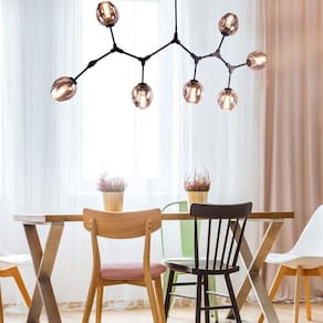 A Linha Orbe versátil e sofisticada é ideal para salas de jantar, livings ou halls. Moderno ou clássico a linha Orbe vai bem em qualquer estilo. A luz suave das lâmpadas de filamentos indicadas para esta linha dá um toque de leveza e aconchego. Material: Metal e Vidro Número de Lâmpadas: 07 Tipo de Lâmpada: Bulbo Acabamento: Metal Acompanha Lâmpada: Não Acompanha Manual de Instalação: Sim Altura: 95 cm Coleção: Orbe Composição: Metal e Vidro Comprimento: 100 cm Cor: Champagne/Preto Cor: Preto/Champagne Cor Predominante: Preto Garantia do Fornecedor: 12 meses Itens Inclusos: 1 Pendente e manual de instalação Largura: 40 cm Linha ou Coleção: Orbe Material da Base: Metal Material Principal: Metal Necessita Montagem: Sim Peso: 6 kg Possui Cabo de Energia: Sim Potência: 40W Potência Máxima da Lâmpada: 280 W Recomendações de Uso, Manutenção e Limpeza: Limpeza com pano seco, sem produtos químicos. Resistência à Maresia: Não Soquete: E27 Tamanho: Bivolt Tipo: Pendente Tipo de Luminária: Pendente Voltagem: Bivolt