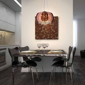 Pendente/plafon em Vidro e Cristal Attractive 40cm G9 - Lustre Design Moderno Sala/Quarto Cores: Cobre Voltagens: 110V/220V Pendente/plafon em Vidro e Cristal Attractive G9 - Lustre Design Moderno Sala/Quarto A luminária de teto Pendente Attractive é a linha queridinha dos brasileiros. Afinal, como não amar essa linda peça Feita em vidro espelhado e com cristais legítimos o Pendente Attractive possui um design moderno que deixa qualquer ambiente sofisticado. Sem contar que devido ao seu vidro espelhado a iluminação fica bastante aconchegante e perfeita para relaxar e receber os amigos. Para que serve: os pendentes, de modo geral, servem tanto para iluminar cantinhos específicos como também podem ser as principais fontes de iluminação de um ambiente tudo varia de acordo com o espaço disponível e com o tamanho da peça. No caso da linha Attractive você encontra os pendentes com 28cm, 40cm e 50cm. Onde colocar: o pendente Attractive é um produto bem universal e pode ser utilizado em todos os ambientes internos, por conta disso, existem três modelos de tamanho. Se o ambiente for de médio a grande como sala de estar, quarto de casal ou sala de jantar indicamos os modelos de 40cm e até mesmo 50cm, se o ambiente for menor como corredor ou lavabo o pendente com 28cm é o ideal. Cuidados: limpar com pano seco e não utilizar produtos abrasivos Informação Técnica Cores Disponíveis conforme disponibilidade em Cobre - Âmbar - Cromado Dimensões do produto 150cm altura total - 40cm diâmetro da cúpula - 23cm altura da cúpula Altura Ajustável Sim Tipo de Soquete G9 Quantidade de Lâmpadas Necessárias 5 Lâmpadas Apropriadas LED Potência Máxima por Lâmpada 40W Acompanha Lâmpada Não Possui LED Integrado Não Material Cristal,vidro e Aço Necessita Montagem Sim 90 dias após emissão de ao consumidor Marca: Não Informado
