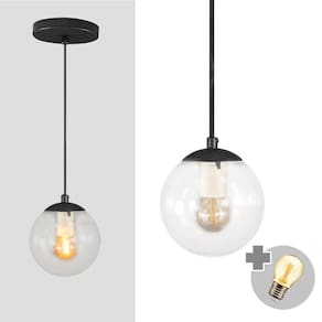Inspirado no Design Vintage o pendente Globo transmite uma decoração sofisticada e dá um toque divertido ao espaço. Seu design minimalista com esfera de vidro tira qualquer sala da . Uma peça diferenciada e muito elegante que fará toda a diferença no seu ambiente. Ideal para iluminações de centro de mesa, balcões, mesa de jogos entre outros. Descrição Técnica: - Modelo: GLOBO 14cm - Acabamento do Vidro: CRISTAL - Acabamento da Base: PRETO - Quantidade de soquetes: 1 - Material: Vidro e Alumínio - Tamanho do Globo (LxAxP): 14cm x 14cm x 14cm - Cabo Revestido em tecido: 1m (regulável) - Soquete: E27 - Bivolt: Sim - Canopla: Em metal com regulador