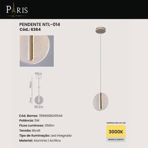 Pendente Redondo Acrílico Dourado 17cm Led 5W 3000K Bivolt