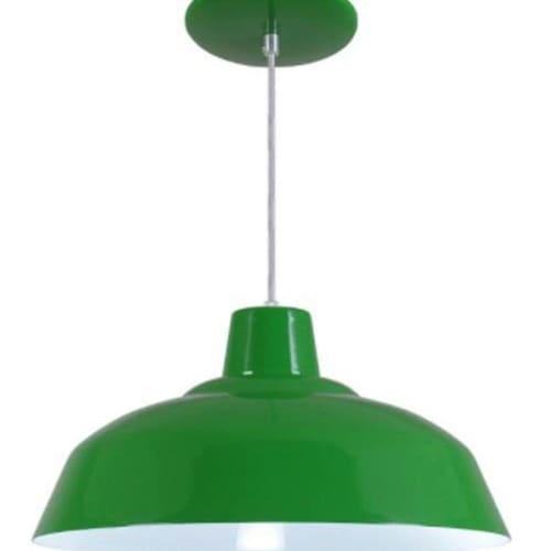 Pendente Retrô, sucesso de vendas, extremamente resistente, é fabricado 100% em alumínio, com pintura eletrostática a pó, tudo para maior durabilidade e qualidade do produto, que nunca enferruja, descasca ou desbota. Possui fácil instalação e é ideal para qualquer ambiente. Renove sua casa com esse pendente. Especificações Técnicas: - Cor: Verde - Material: 100% Alumínio - Pintura: Eletrostática a Pó - Diâmetro: 34cm - Altura: 17cm - Cabo regulável: 1,30m - Canopla do teto: 14cm de Diâmetro - Voltagem: Bivolt 110/220v - Soquete: E-27 Itens Inclusos: - Pendente Retrô - Canopla de teto com travessa - Soquete com fiação - Parafusos para instalação