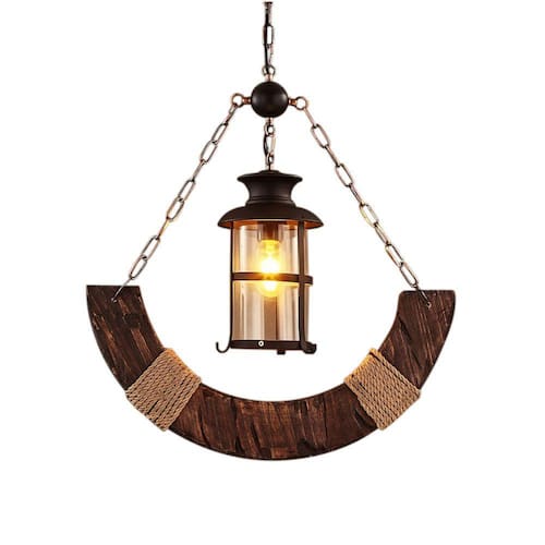 Cód: LA0026 Pendente Rústico Âncora Soquete: 1*E27 (Lâmpada não inclusa) Material: Metal e Madeira Cor: Preto Dimensões: 54x60cm (CxA) Canopla: Ø12cm Comprimento da Corrente: 80cm:
