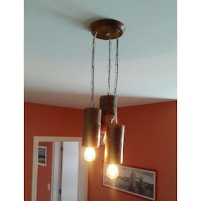 Pendente Rústico ColonialTraz modernidade ao ambiente e fica ótimo em diversos cenários. Para criar harmonização, é super indicado mesclar o pendente com outras tonalidades.- 3 Pendentes modelo Rústico na mesma canopla;- Produto de madeira maciça.- Garantia de 3 meses contra defeitos de fabricação;- Pronto para instalar;- Encaixa a lâmpada que desejar - Soquete: E-27;- Lâmpada não inclusa.Itens Inclusos:- 1 Lustres Pendentes Modelo Rústico- 1 Canopla de 13cm com 3 Saidas- Não acompanham Lâmpadas