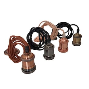 Pendente rústico retrô vintage de metal para teto de 2 metros soquete bocal e27 com fio cabo em tecido com tampa canopla Cor: marrom O pendente retro de teto com fio, traz estilo para sua casa, beleza e aconchego. Sugerimos a utilização de lâmpadas estilo vintage de led ou filamento de carbono, com temperatura de cor amarela para elegância na decoração de sua iluminação.