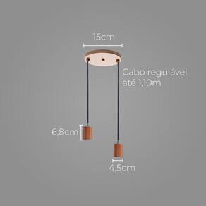 ESPECIFICAÇÕES TÉCNICAS: - Cor: Cobre - Material: Alumínio - Voltagem: Bivolt 110/220V - Soquete: 2x E-27 (lâmpadas não inclusas) - Dimensões Soquete: 6,8 cm de altura x 4,5 cm de diâmetro - Dimensões da Base (teto): 15 cm de diâmetro - Comprimento do Cabo: regulável em até 1,10 m