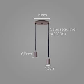 ESPECIFICAÇÕES TÉCNICAS: - Cor: Preto - Material: Alumínio - Voltagem: Bivolt 110/220V - Soquete: 2x E-27 (lâmpadas não inclusas) - Dimensões Soquete: 6,8 cm de altura x 4,5 cm de diâmetro - Dimensões da Base (teto): 15 cm de diâmetro - Comprimento do Cabo: regulável em até 1,10 m