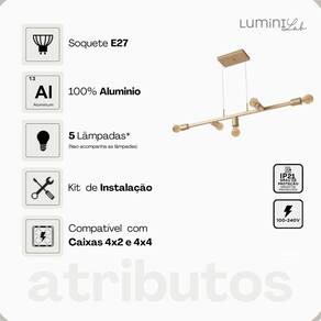 Apresentamos o Pendente Tazza de Alumínio Teto E27 com 5 Luzes da Lumini Lab, uma solução ideal para quem busca iluminar ambientes com estilo e sofisticação. Este pendente possui um design moderno e elegante, perfeito para compor a decoração de salas de estar, cozinhas e espaços comerciais.\nFabricado em alumínio de alta qualidade, o pendente é leve e durável, proporcionando facilidade na instalação e manutenção. O soquete E27 permite a utilização de lâmpadas de diferentes tipos e potências, possibilitando personalizar a intensidade da luz de acordo com suas necessidades. Com cinco pontos de luz, esse pendente oferece uma iluminação ampla e uniforme, criando um ambiente aconchegante e agradável.\nAlém de funcional, o design do Pendete Tazza agrega um toque contemporâneo ao espaço, harmonizando-se com diversos estilos de decoração. Seu acabamento refinado garante que o produto mantenha a beleza e resistência ao longo do tempo, tornando-se uma peça chave na sua casa ou negócio.\nAdquira o Pendente Tazza de Alumínio Teto E27 5 Luzes da Lumini Lab e transforme seu ambiente com elegância e eficiência. Marca: Não Informado