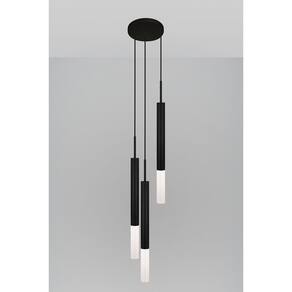 Pendente Teto Luminária Tubo Triplo Difusor Mesa Ilha Preto