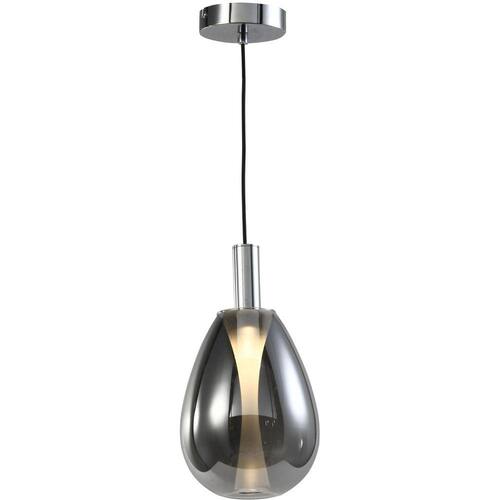 PENDENTE THUNDER Ø14X26cm CROMADO E VIDRO FUMÊ - 2 METROS DE CABO BIVOLT 4W 320 3000K METAL E VIDRO
