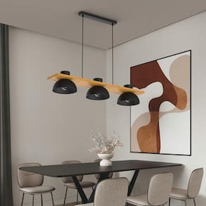 Pendente triplo moderno em madeira e metal preto 90cm Pendente moderno triplo em madeira e metal - design sofisticado para sala de jantar e cozinha Não acompanha as lâmpadas Transforme seu ambiente com este lustre pendente moderno, que une design elegante e iluminação funcional. Com acabamento em metal preto fosco e detalhe em madeira natural, ele traz um toque contemporâneo e aconchegante para sua casa. Características: Estrutura em madeira de alta qualidade e cúpulas metálicas Altura ajustável até 1,20m Largura total: 90cm Compatível com lâmpadas e27 não inclusas Ideal para mesas de jantar, cozinhas, bares e ambientes sofisticados destaques: Estilo minimalista e moderno Iluminação direcionada e aconchegante Combinação perfeita de preto e madeira para decoração contemporânea Perfeito para quem busca elegância, funcionalidade e um toque de sofisticação no ambiente. O produto é novo Sim, todos os produtos são novos. Caso o produto não supra minha necessidade posso devolver ou trocar O produto tem Sim, todos os produtos têm . Se ainda houver alguma dúvida estamos a disposição para responder de segunda-feira a sexta-feira das 08:00 às 17:30. Marca: Não Informado Ean: 7796054855521