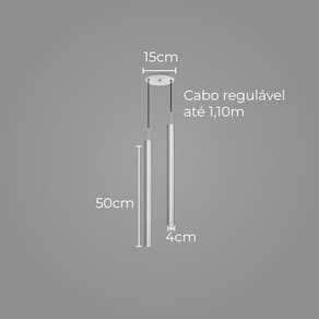 ESPECIFICAÇÕES TÉCNICAS: - Cor: Escovado - Voltagem: Bivolt 110/220V - Soquete: 2x GU10 p/ MR11 (lâmpada não inclusa) - Dimensões do Tubo: 50 cm de altura x 4 cm de diâmetro - Dimensões da Base (teto): 15 cm de diâmetro - Comprimento do Cabo: até 110 cm