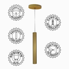 Pendente Tubo Palito 30cm - Ouro Pendente Palito Com Design Slim este pendente é simples e lindo ao mesmo tempo. Proporciona uma luz focada e suave. Com cabo PP de 1 metro, regulador e canopla em metal esta luminária é uma tendência na iluminação. Descrição Técnica: - Modelo: PALITO - Acabamento do corpo: OURO - Material: Alumínio Usinado - Tamanho (LxAxP): 4cm x 30cm x 4cm - Cabo: PP com 1m (regulável) - Cor do Cabo: Ouro - Soquete: GU 10 - Bivolt: Sim - Canopla: Em metal com 12cm, modelo plano e trava cabo regulador do cabo. Acabamento preto fosco **Lâmpadas vendidas separadamente**
