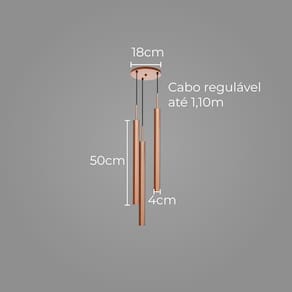 ESPECIFICAÇÕES TÉCNICAS: - Cor: Dourado - Material: Alumínio - Voltagem: Bivolt 110/220V - Soquete: 3x GU10 p/ MR11 (não inclusa) - Dimensões do Tubo: 50 cm de Altura x 4 cm de Diâmetro - Dimensões da Canopla: Diâmetro 18 cm | Furos 8,6 cm - Comprimento do Cabo: Regulável até 110cm - Peso: 800g - Garantia: 12 meses