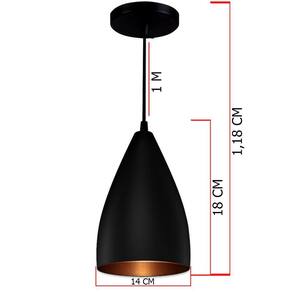 O kit é composto por dois pendentes cônicos, cada um com altura de 18 cm e diâmetro de 14 cm. Eles vêm acompanhados de um cabo PP ajustável de 1 metro, que permite ajustar a altura dos pendentes de acordo com a necessidade do ambiente. O soquete utilizado é o E-27, garantindo compatibilidade com diversas lâmpadas disponíveis no mercado.