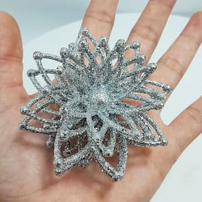 Pendentes Enfeite Natalino Flores Com Gliter Prata Kit 12pçs Pendentes Enfeite Natalino Flores Com Gliter Prata Kit 12pçs - Pendentes natalinos flores com glitter 8cm!!! Natal é sinônimo de família, reunião e decoração. Para tornar esse momento ainda mais especial decore sua arvore de natal este belo conjunto de pendentes decorados e dê um toque lindo e festivo ao seu natal Especificações: Cor: Prata com glitter; Tamanho: 8cm Diâmetro; Material: Plástico; Uso: Árvores de natal, portas e paredes Conteúdo Da Embalagem: 6 Conjunto com 2 Peças Flores Prata com Glitter de 8cm