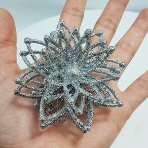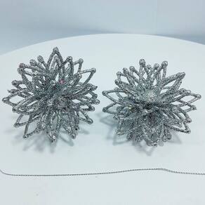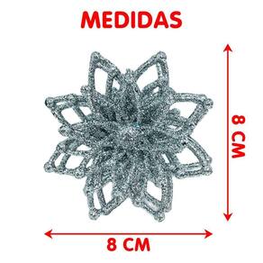 Especificações:Cor: Prata com glitter;Tamanho: 8cm Diâmetro;Material: Plástico;Uso: Árvores de natal, portas e paredesConteúdo Da Embalagem:4 Conjunto com 2 Peças Flores Prata com Glitter de 8cm
