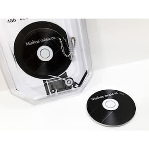 Já o Vinil continha mais canções com uma qualidade sonora melhor. E hoje graças ao mundo das tecnologias e inovações temos os pen drives. Então, para não deixar de lado o charme do vinil e as boas lembranças dos velhos tempos à que ele nos remete, aqui apresentamos um pen drive no formato de Disco de Vinil