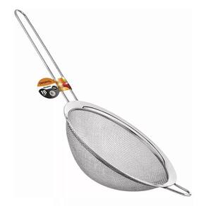 Principais Benefícios: Material Premium: Fabricada em aço inoxidável, resistente à corrosão e ao desgaste, garantindo longa vida útil. Tamanho versátil: Com 16 cm de diâmetro, é ideal para peneirar farinhas, açúcar, coar sucos e caldos, além de ser prática para diversas receitas. Design ergonômico: Alça confortável e bordas reforçadas para maior segurança e facilidade no manuseio. Fácil de limpar: Superfície lisa e não porosa que facilita a remoção de resíduos, compatível com lava-louças. Higiênica e segura: Não altera o sabor dos alimentos e é perfeita para uso em preparos culinários diários ou profissionais. Recomendações do Fabricante: Antes do primeiro uso, lave a peneira com água morna e detergente neutro. Após o uso, evite deixar resíduos secos; lave imediatamente para preservar a malha de aço inox. Para maior durabilidade, seque o utensílio logo após a lavagem, especialmente se não for utilizar a lava-louças. Armazene em local seco para evitar marcas de água ou manchas. Não utilize produtos abrasivos para evitar danos ao acabamento.