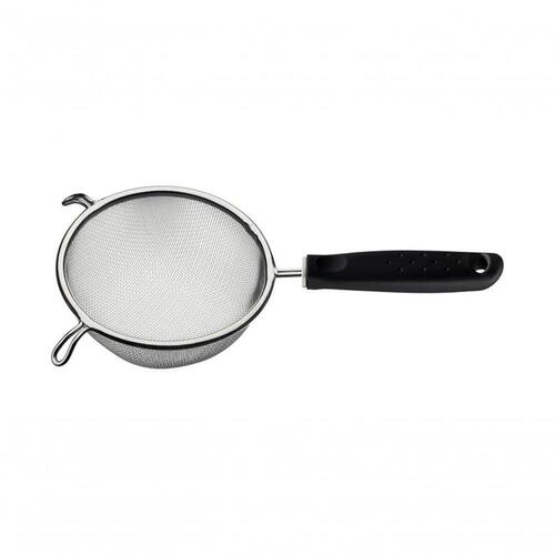 Peneira de aço inox com suporte para apoio em outros utensí cabo de polipropileno possui furo passante possibilitando que seja pendurado na sua ílio ideal para peneirar farinhas ou coar chás, sucos de frutas e ir à máquina de lavar louças facilitando seu dia a dia. Ean: 7891112107106