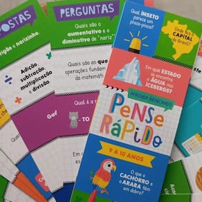 Explore o emocionante jogo Pense Rápido 9 a 10 anos, repleto de perguntas estimulantes e ilustrações envolventes para idades a partir de 9 anos. Desafie o cérebro, promova o desenvolvimento cognitivo e divirta-se enquanto aprende. Ideal para interação em família, adultos podem participar lendo as perguntas.