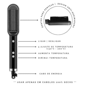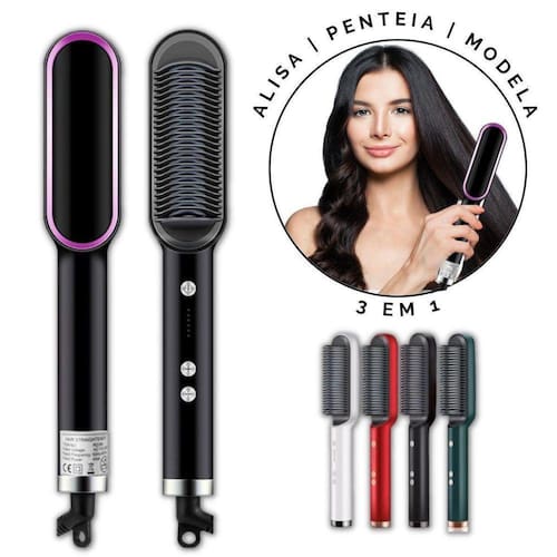 Aqui você encontra produtos de alta qualidade e com o melhor custo benefício do mercado. Despachamos nossos produtos em menos de 24h para todo brasil. Escova pente alisador de cabelo - 3 em 1 : alisa, penteia e modela com ajuste de temperatura As cores do produto são enviadas conforme disponibilidade em estoque Escova pente alisadora de cabelo, desenvolvida para facilitar e simplificar a sua vidaPossui 3 funcionalidades em 1 : alisa , penteia e modela simples e fácil de usarDispõe de 5 níveis de temperatura, que vai de 130c a no máximo 200c.Para um alisamento rápido, sem frizz e seguro, sua temperatura é constante e tem um design anti-queimadurasSeu uso é indicado para todos os tipos de cabelos.Não usar em cabelo molhado ou úmidoUsar em cabelos 100% secos Embalagem contém: - 01 escova Informações técnicas : - potência: 45w- modelo: fh909- voltagem: bivolt- material: cerâmica ptc- temperatura: 5 ajustes 130c - 200c - comprimento do cabo: 1.10 mt- plugue tipo c As cores do produto são enviadas conforme disponibilidade em estoque Dúvidas frequentes: 2 - em caso de alguma dúvida ou defeito, vou ter um suporte para me ajudar Para qualquer duvida estaremos a disposição Marca: E&A Hair
