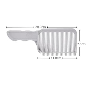 pente de barbeiro: pente de posicionamento curvo, curva tipo c, ajusta-se perfeitamente ao formato da cabeça, aparando os cabelos de forma fácil e rápida. design exclusivo: pente cortador de cabelo, cabeça redonda e lisa, ajuda a obter um corte preciso e uma mistura sem esforço, fácil de operar e não machuca o couro cabeludo. material durável: o pente para cortar cabelo é feito de material plástico abs premium, resistente ao calor, resistente e durável de usar e não é fácil de quebrar. alça confortável: este pente desbotado tem uma alça ergonômica, proporcionando uma confortável, fácil de segurar e economizando esforço. Ferramenta de modelagem de cabeleireiro compacta, leve e versátil para o tipo de cabelo masculino, fácil de usar e transportar. amplas aplicações: o pente de mistura de topo plano é ótimo para barbearias profissionais, salões de cabeleireiro e estilistas. Também é adequado para pentear e modelar em casa.