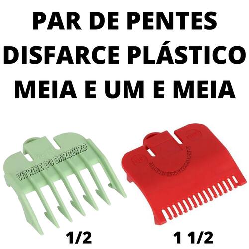 KIT PENTE DE DISFARCE 0,5 E 1,5 PARA MÁQUINAS DE CORTEPentes de excelente qualidade, compatível com todas as Máquinas de Corte:O Pente de Disfarce 0.5 e 1.5mm é especialmente feito para cortes mais precisos de fade o tão famoso degrade.- Faz também as linhas de disfarce mais facilmente.Excelente para quem já possui as máquinas Kemei, e quer melhorar ainda mais a experiência e a qualidade.Conteúdo do pacote:1 x Pente de 0.51 x Pente de 1.5===================================================================Todos nossos produtos com 30 dias de garantia.Todos nossos produtos são a pronta entrega. Após a confirmação do pagamento seu pedido é enviado em até 24h.Temos Satisfação em te Oferecer Produtos de Alta Qualidade!Todas as fotos de nossos produtos são reais.Adicione seus produtos no carrinho e Boas Compras!!!Qualquer dúvida estamos á disposição!Temos Satisfação em Atendê-lo (a).