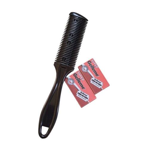 Pente navalha preto para barbeiros, ideal para degradês, texturizações e finalizações profissionais.