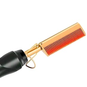Consiga um alisamento perfeito desde a raiz com este pente quente de tecnologia moderna, ideal para domar fios rebeldes, selar cutículas e finalizar penteados com precisão superior à chapinha comum. Especialmente eficaz para alinhar a raiz, finalizar laces e alisar cabelos crespos e cacheados com rapidez e praticidade. Sua liga de titânio distribui o calor de forma uniforme, ajudando a proteger os fios contra danos excessivos. Leve e fácil de manusear, conta ainda com suporte de segurança para apoio em superfícies.