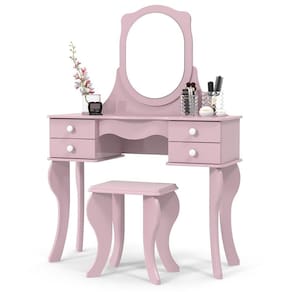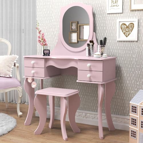 Penteadeira 04 Gavetas Princesa Rosa com Banqueta - Patrimar