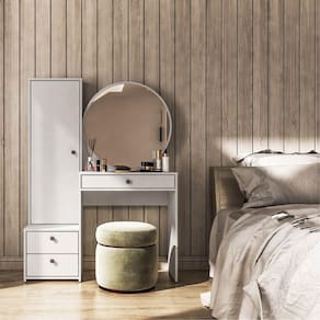 A Penteadeira Miami tem um design moderno, com seu espelho redondo e vários compartimentos para guardar os objetos pessoais, conta com uma Porta com Dobradiças com amortecedor e três gavetas com corrediças telescópicas, acabamento em Finish Foil de 15mm com Borda PVC e Puxadores em Polímero, o Móvel mais Versátil que você vai encontrar. Acabamento da Gaveta: Finish Foil Acabamento da Porta: Finish Foil Acompanha Banqueta: Não Altura do Espelho: 66,8 cm Ambiente Principal: Quarto Complexidade da Montagem: Baixa: pode ser montado por uma pessoa sozinha Cor: Branco Cor do Produto: Branco Cor Flex: Não Cor Interna: Branco Escala de Brilho: Fosco Escala de Brilho da Gaveta: Fosco Escala de Brilho da Porta: Fosco Espessura do Espelho: 3 mm Fita Integrada: Sim Formato do Espelho: Redondo Gaveta com Chave: Não Informações Complementares: Corrediça Telescópica, Dobradiças com Amortecedor Borda em PVC, puxador Polimero Itens Inclusos: 1 Penteadeira, Kit Ferragens e Manual de Montagem. Largura do Espelho: 66,8 cm Linha ou Coleção: - Manual de Montagem e Instalação: https://cdn2.madeiramadeira.com.br/atributo/bortolini-m-veis/832764-168076-penteadeira-miami-3g-1p.pdf Material da Gaveta: MDP Material da Porta: MDP Material do Puxador da Gaveta: Poliestireno Material do Puxador da Porta: Poliestireno Material Principal: MDP Montagem Flex: Não Necessita Montagem: Sim Origem do Produto: Nacional Peso: 24,282 kg Peso Máximo por Gaveta: 2 kg Peso Máximo por Prateleira: kg Possui iluminação: Não Possui Moldura: Não Possui Pés: Não Possui Porta Objetos: Sim Possui Portas: 01 Possui Prateleiras: Não Possui Vidro: Não Quantidade de Espelho: 01 Recomendações de Uso, Manutenção e Limpeza: Limpar com pano seco e Limpo não utilize produtos abrasivos para limpeza do móvel (Desengordurantes, Multiusos, Cloro), ao passo que esses produtos prejudicam o revestimento Sapatas Niveladoras: Não Sistema de Montagem: Minifix, Cavilhas e Parafusos Suporta Até (kg): 51 kg Tampo Basculante: Não Tipo de Corrediça da Gaveta: Metálica Telescópica Tipo de Dobradiça/Corrediça da Porta: Metálica Tipo de Fixação do Espelho: Fita Dupla Face Tipo de Porta: Bater Tipo de Puxador da Gaveta: Externo Tipo de Puxador da Porta: Externo Marca: Elaborart Design