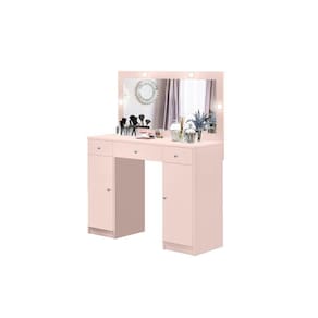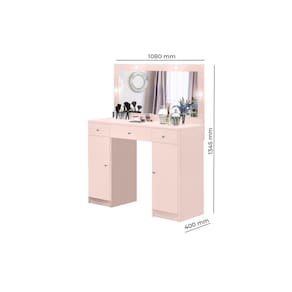 Modelo desenvolvido especialmente para facilitar e organizar pertences de maquiagem e beleza, oferecendo um amplo espelho iluminado por quatro leds, com um amplo espelho, três gavetas, além de duas portas para acomodação de pertences maiores. Acabamento da Gaveta: Pintura UV Acabamento da Porta: Pintura UV Acabamento da Prateleira: Pintura UV Acompanha Banqueta: Não Altura do Espelho: 40 cm Ambiente Principal: Quarto Complexidade da Montagem: Alta: deve ser montado por um montador especializado Cor: Rose Cor do Produto: Rosé Escala de Brilho: Brilhante Escala de Brilho da Porta: Brilhante Escala de Brilho da Prateleira: Brilhante Espessura do Espelho: 3 mm Formato do Espelho: Retangular Gaveta com Chave: Não Itens Inclusos: 1 Penteadeira, Kit Ferragens e Manual de Montagem Largura do Espelho: 93,5 cm Manual de Montagem e Instalação: https://cdn2.madeiramadeira.com.br/atributo/j-a-moveis/1160606-penteadeira-realeza.pdf Material da Gaveta: MDP Material da Porta: MDP Material da Prateleira: MDP Material Principal: MDP Necessita Montagem: Sim Origem do Produto: Nacional Peso: 38,95 kg Peso Máximo por Gaveta: 10 kg Peso Máximo por Prateleira: 10 kg Possui iluminação: Sim Possui Moldura: Não Possui Pés: Não Possui Porta Objetos: Não Possui Portas: 02 Possui Prateleiras: 02 Quantidade de Espelho: 01 Recomendações de Uso, Manutenção e Limpeza: Limpar com pano seco, manter em lugar livre de umidade, ao abrigo de exposição direta ao sol. Sapatas Niveladoras: Sim Sistema de Montagem: Parafusos, Tampas, pregos Suporta Até (kg): 45 kg Tipo de Corrediça da Gaveta: Metálica Simples Tipo de Dobradiça/Corrediça da Porta: Alumínio Tipo de Fixação do Espelho: Botão Francês Tipo de Porta: Bater Tipo de Puxador da Gaveta: Externo Tipo de Puxador da Porta: Externo undefined: 823661