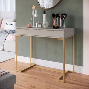 Que tal a Penteadeira Amélia?Se você sonha em ter um espaço voltado especialmente para a organização dos seus cosméticos e maquiagens favoritas, a Penteadeira Amélia é a escolha perfeita! Com um tampo espaçoso e gavetas práticas que ajudam a deixar tudo fácil de alcançar, ela só precisa de um espelho - que precisa ser adquirido à parte - para fazer aquela make impecável. A cor clean é ideal para combinar facilmente com outros móveis, principalmente a cadeira que vai compor o cantinho, e deixar o ambiente ainda mais bonito e harmonioso. Funcionalidade e estilo em um único móvel para completar o seu espaço pessoal ;) Marca: Modern