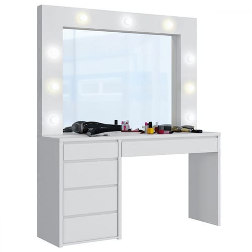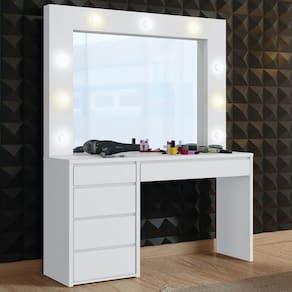 O(a) Penteadeira Anne 5 Gavetas Branco Acetinado - Mavaular é produzido em MDF e MDP na escala de brilho Brilho e Fosco, e possui um grau de dificuldade de montagem: Médio.