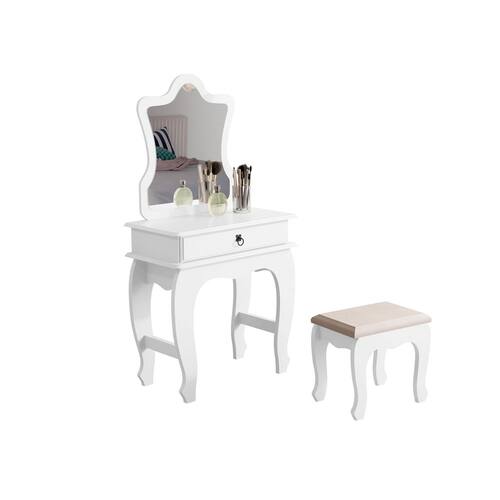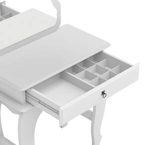 Conta com tampo funcional, nichos abertos e gavetinha para acomodar itens pessoais, acessórios ou materiais escolares com fácil acesso.