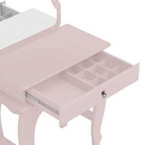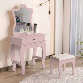 Conta com tampo funcional, nichos abertos e gavetinha para acomodar itens pessoais, acessórios ou materiais escolares com fácil acesso.