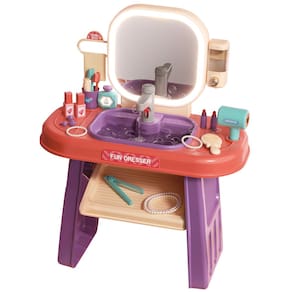 A Fun Dresser Desktop inclui uma torneira que libera água ao ser pressionada repetidamente, ensinando as crianças sobre a importância da higiene de maneira lúdica. Além disso, a cena de maquiagem simulada inspira a imaginação e permite que as pequenas vivam o sonho de ter seu próprio espaço de beleza, enquanto aprendem a se arrumar e a desenvolver hábitos de autocuidado.