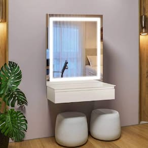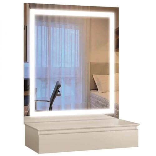 Penteadeira Camarim 1 Gaveta Paris Com Espelho Led Mavaular Branco Penteadeira Camarim 1 Gaveta Paris com Espelho Led Mavaular O camarim Paris vai transformar seu quarto com toda o seu requinte e beleza. O modelo super moderno conta com espelho com detalhe jateado e iluminacao em LED. Seu nicho possui tampo de 25mm em MDF com detalhe em 45 graus, alem de gavetas com corredicas telescopicas e divisoria para maquiagem . Fique a vontade para escolher entre as cores off white, branca e le para compor a sua decoracao e levar mais sofisticacao para o seu ambiente.