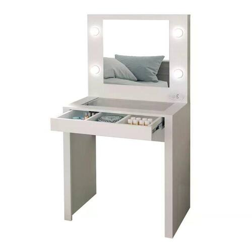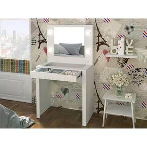 Penteadeira Camarim PE2017, perfeita para você organizar seus itens de maquiagem, perfumes, escovas e acessórios em um só lugar, estrutura resistente em MDP de 15mm, tampo de vidro suporta até 5 kg, pintura com acabamento em Uv (Brilho). Possui 01 gaveta com corrediças telescópicas que deslizam com suavidade, gaveta suporta até 3 kg, tampo superior com vidro assim você pode visualizar seu itens na gaveta, gaveta com divisórias funcionais para organizar seus acessórios com muita praticidade, interruptor com tomada ideal para conectar seu secador de cabelo, conta com 04 soquetes acoplados na moldura do espelho para lâmpadas (lâmpadas não inclusas). Indicamos a compra da lâmpada de LED na temperatura quente (luz amarela) na intensidade de até 10Wats para melhor iluminação ao maquiar-se. Este móvel chegará em sua casa separado em 01 volume.